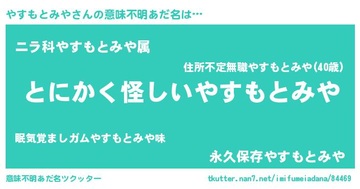 | 胡散臭い通販商品みたいなあだ名 | 『全米が絶賛したサプリメント…その名も「やすもとみや」』 |