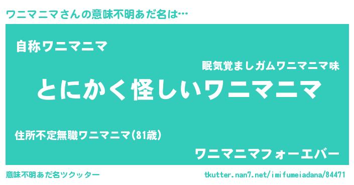 | 男性向けラノベタイトル風あだ名 | 『ワニマニマの嫁は女の子じゃないと思った?』 |
