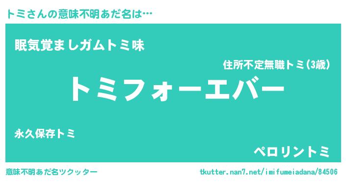 | 女子向けラノベタイトル風あだ名 | 『トミの雑貨屋さん』『死神トミの再婚』 |