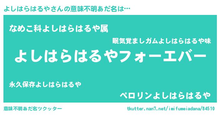| 男性向けラノベタイトル風あだ名 | 『やはりよしはらはるやの青春ラブコメはまちがっている 』 |