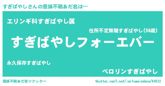 | 2回繰り返すあだ名 | 『すすぎぎ』『よぼよぼ』『すぎすぎ』 |