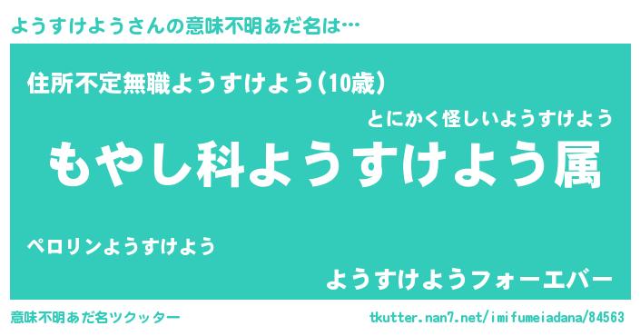 | 男性向けラノベタイトル風あだ名 | 『転生したらようすけようだった件』 |