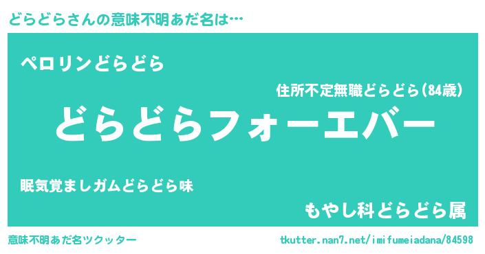 | ポケモン風あだ名 | 『ドラドダネ』『メロドッラ』 |
