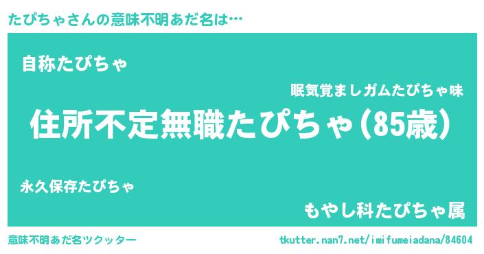 | 男性向けラノベタイトル風あだ名 | 『魔弾の王とたぴちゃ』 |