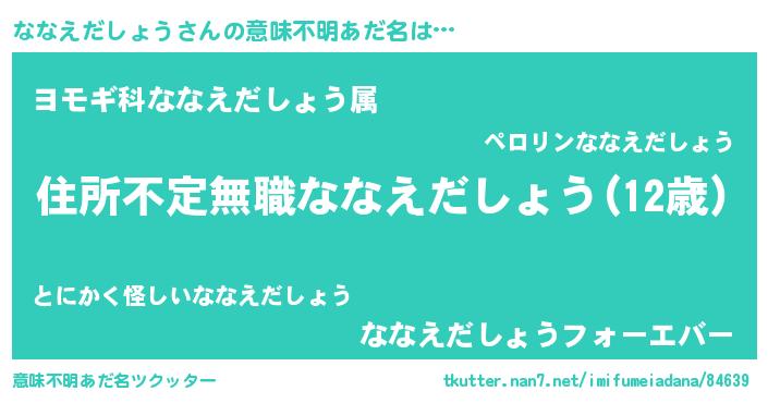 | 男性向けラノベタイトル風あだ名 | 『この素晴らしい世界にななえだしょうを!』 |