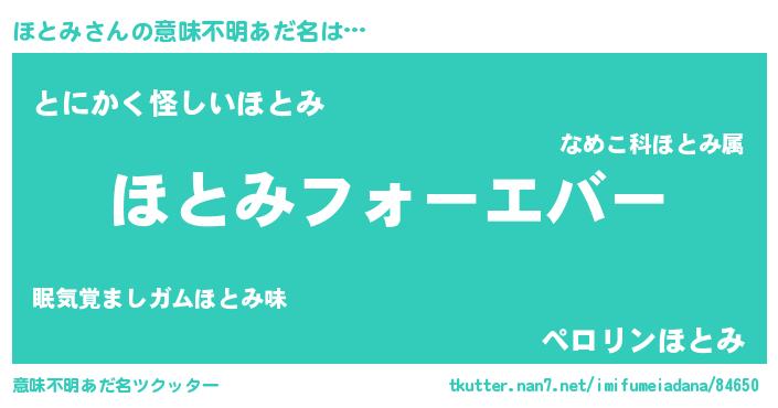 | 女子向けラノベタイトル風あだ名 | 『ほとみの雑貨屋さん』『ほとみ恋絵巻』 |