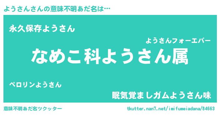 | 男性向けラノベタイトル風あだ名 | 『転生したらようさんだった件』 |