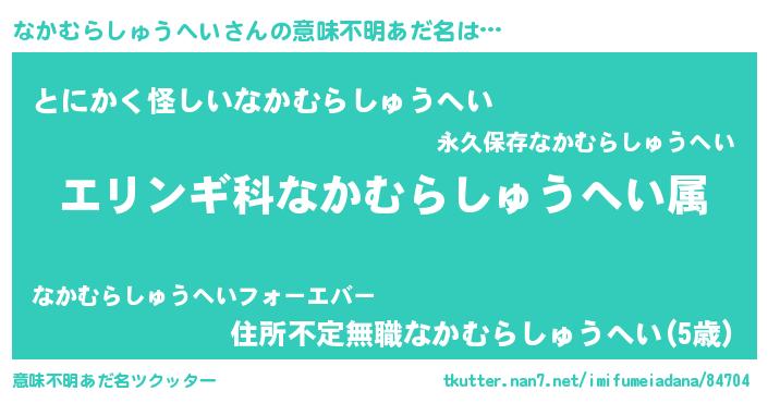| 男性向けラノベタイトル風あだ名 | 『ナカムラシュウヘイスレイヤー』 |