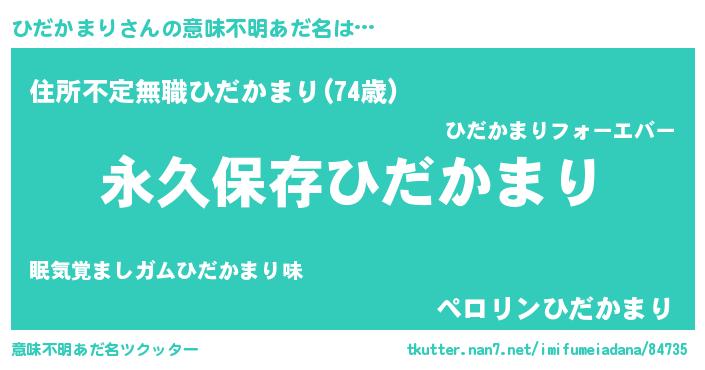 | 男性向けラノベタイトル風あだ名 | 『ひだかまりという概念が存在しない退屈な世界 』 |