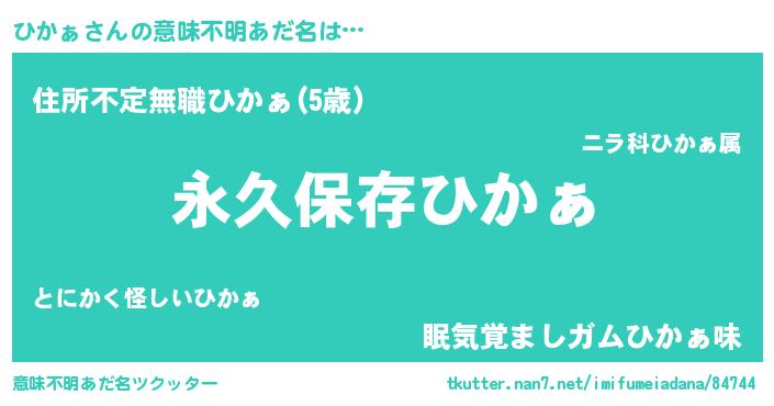 | 男性向けラノベタイトル風あだ名 | 『ひかぁという概念が存在しない退屈な世界 』 |