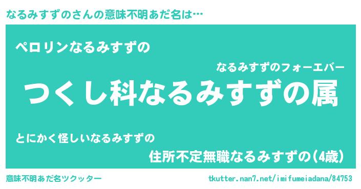 | 男性向けラノベタイトル風あだ名 | 『うちのなるみすずのが世界を掌握している!』 |