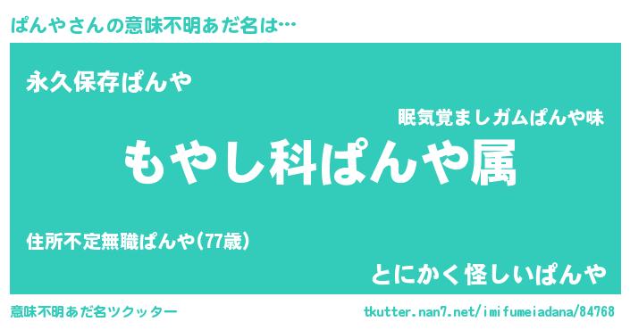 | ヘコむあだ名 | 『ぱんや(小並感)』『ぱんっぺ』 |