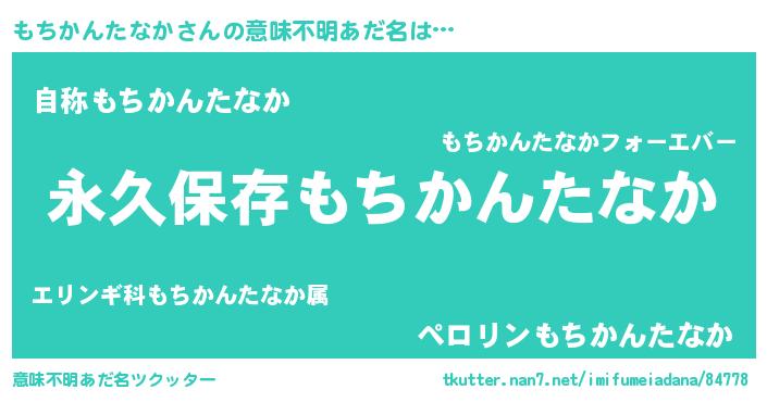 | 男性向けラノベタイトル風あだ名 | 『もちかんたなかという概念が存在しない退屈な世界 』 |
