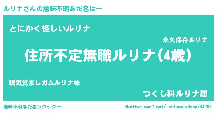 | 料理風あだ名 | 『ルリナのカルパッチョ風』 |