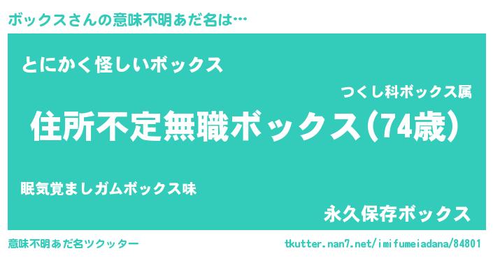 | 男性向けラノベタイトル風あだ名 | 『うちのボックスが世界を掌握している!』 |