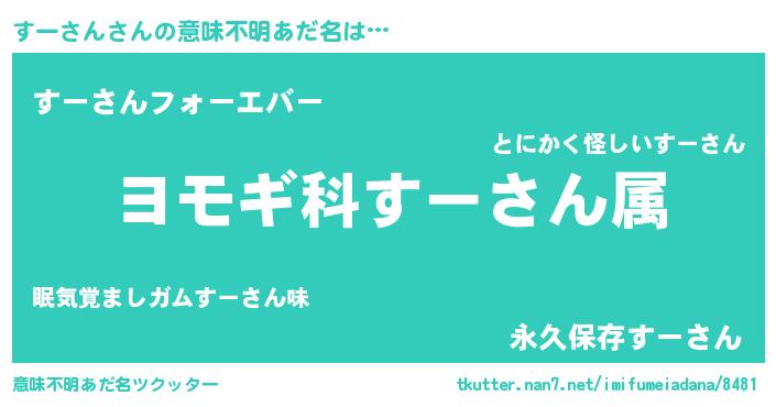 | 自動車の名前っぽいあだ名 | 『スールスーイス』『スクア』 |