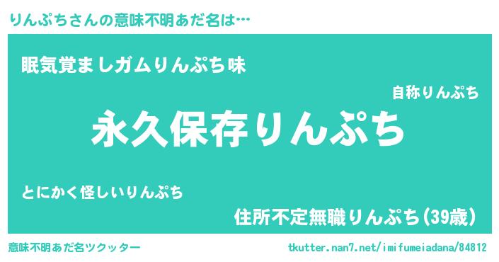 | 男性向けラノベタイトル風あだ名 | 『りんぷちという概念が存在しない退屈な世界 』 |