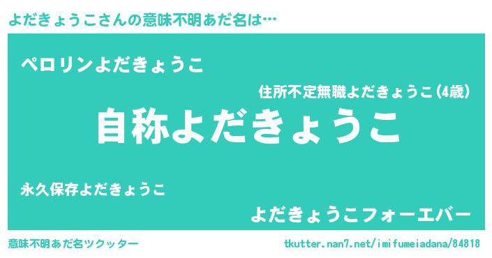 | 欧米人風あだ名 | 『ケンブリッジよだきょうこ』 |
