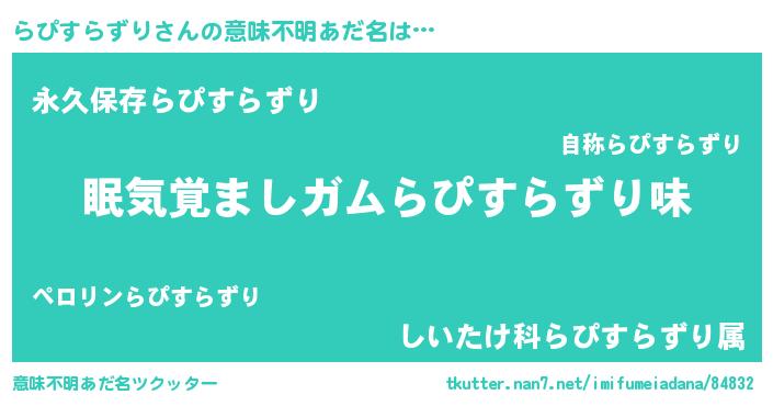 | ヘコむあだ名 | 『らぴすらずり(爆)』『らぴっふぃ~』 |