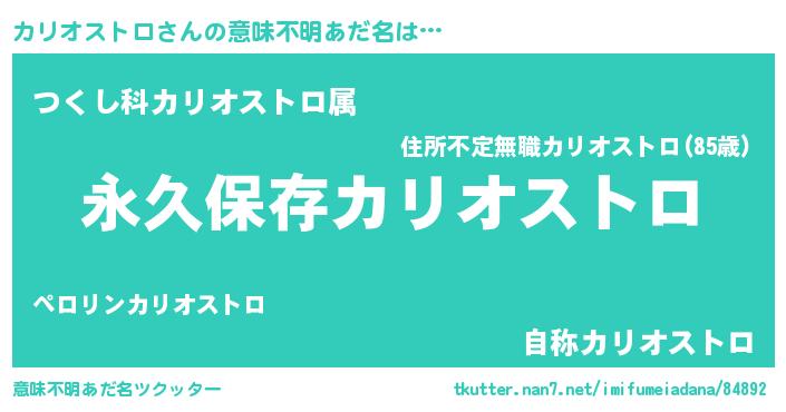 | 男性向けラノベタイトル風あだ名 | 『カリオストロという概念が存在しない退屈な世界 』 |