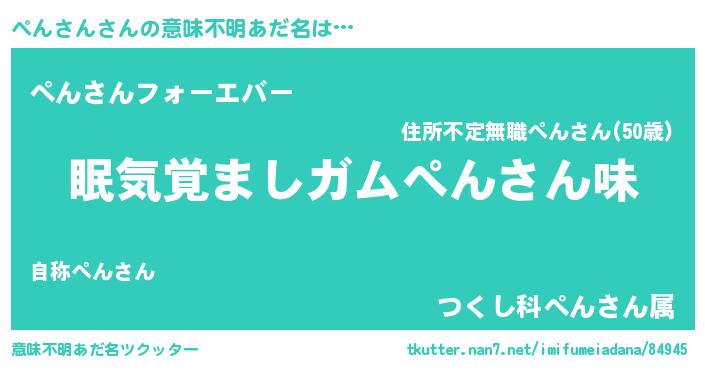 | ヒーロー風カッコイイあだ名 | 『正義の使者ぺんさん』『仮面ペンダー』 |