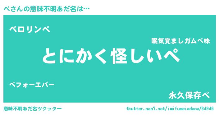 | 自動車の名前っぽいあだ名 | 『ペント』『ペティマ』『デミペ』 |