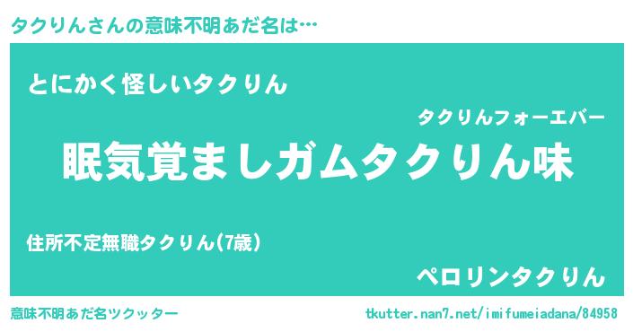 | 自動車の名前っぽいあだ名 | 『タンR』『タルトクパン』『タクア』 |