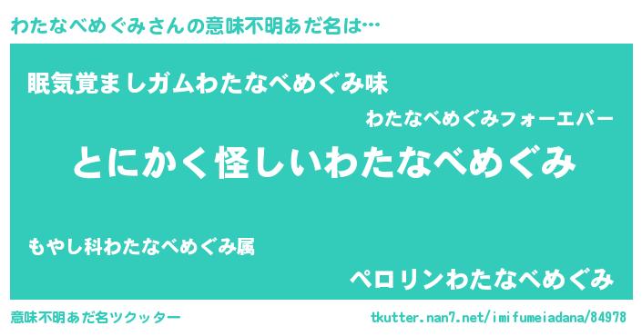 | 欧米人風あだ名 | 『ウサインわたなべめぐみ』 |