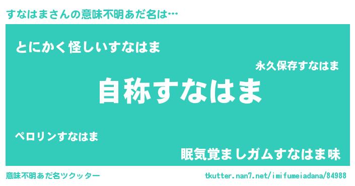 | ヒーロー風カッコイイあだ名 | 『究極戦士スナハマ』『炎刃騎士スナ』 |