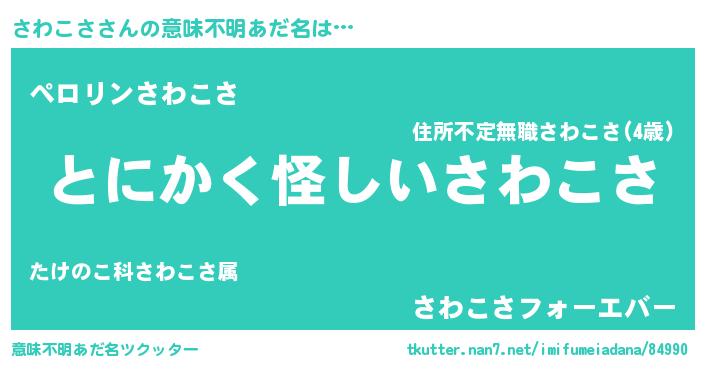 | 胡散臭い通販商品みたいなあだ名 | 『信頼と実績のサプリメント…その名も「さわこさ」』 |