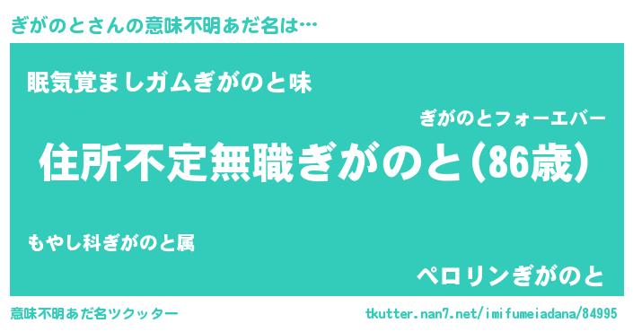 | 男性向けラノベタイトル風あだ名 | 『この素晴らしい世界にぎがのとを!』 |