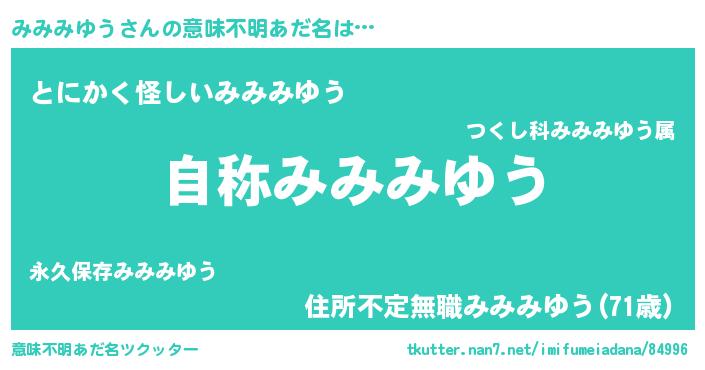 | 欧米人風あだ名 | 『ケンブリッジみみみゆう』 |