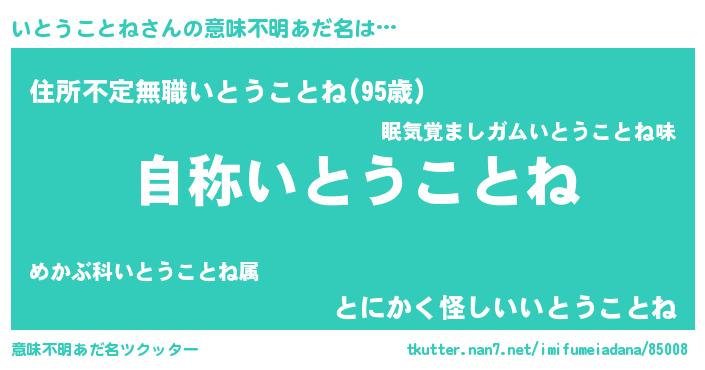 | 男性向けラノベタイトル風あだ名 | 『Re:いとうことねから始める異世界生活』 |