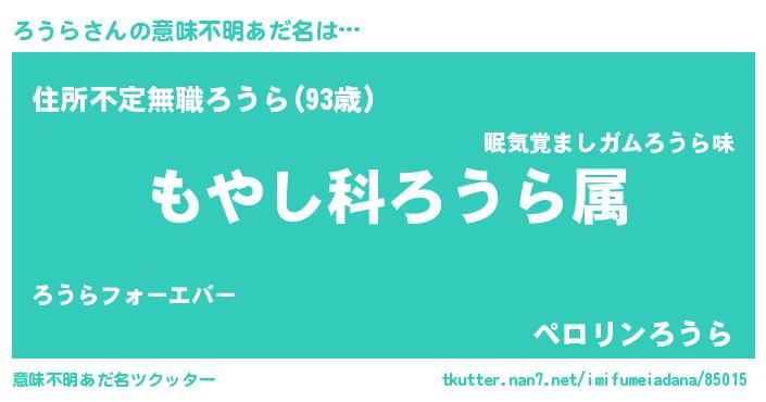 | ヘコむあだ名 | 『ろうもー』『豆乳』『ろうっ子』 |