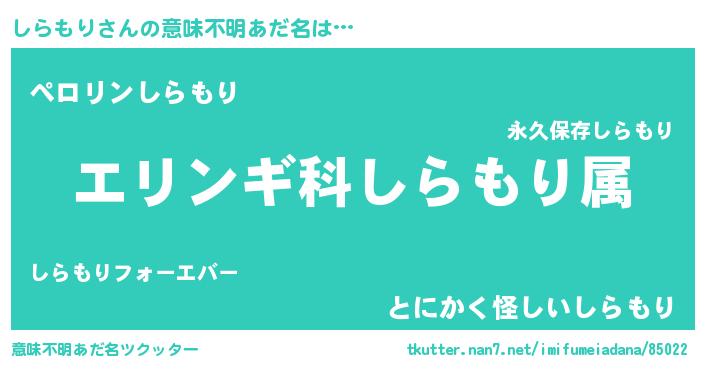 | 胡散臭い通販商品みたいなあだ名 | 『必ず成功するブレスレット…その名も「しらもり」』 |