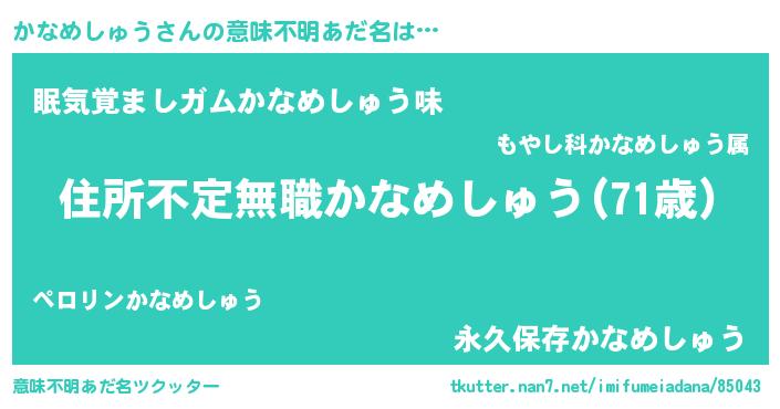 | ヘコむあだ名 | 『かなめしゅう(苦笑)』『かなもー』 |