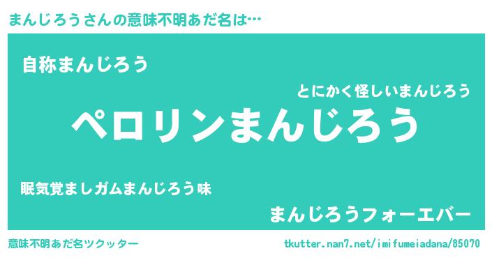 | 男性向けラノベタイトル風あだ名 | 『まんじろうに滅ぼされるだけの簡単なお仕事です』 |