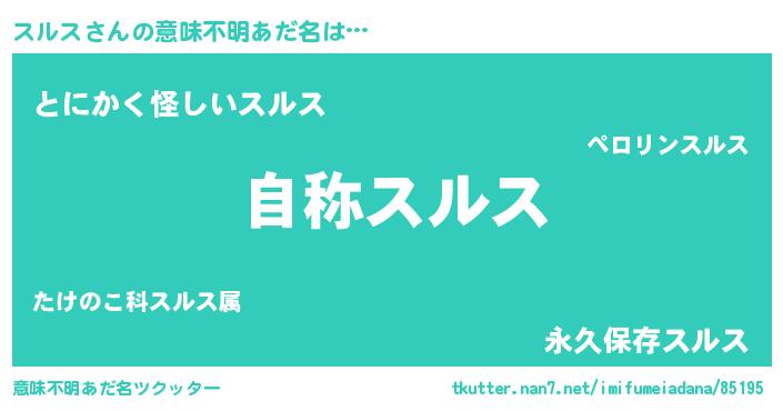 | 女子向けラノベタイトル風あだ名 | 『闇のスルス』『スルスは平凡を望む』 |