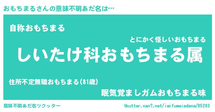 | 欧米人風あだ名 | 『おもちまる・ステッグマイヤー』 |