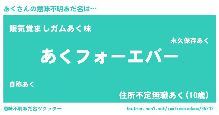 | 女子向けラノベタイトル風あだ名 | 『あくの雑貨屋さん』『死神あくの再婚』 |