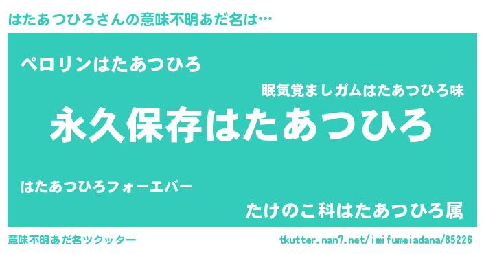 | 可愛いあだ名 | 『はたあつひろママ』『はんはん』 |