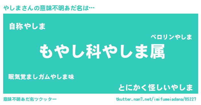 | ヒーロー風カッコイイあだ名 | 『最強戦士ヤシマ』『幻影騎士ヤシ』 |
