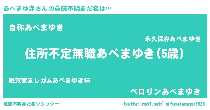 | 男性向けラノベタイトル風あだ名 | 『この素晴らしい世界にあべまゆきを!』 |