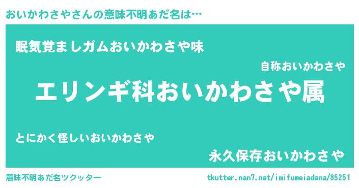 | 胡散臭い通販商品みたいなあだ名 | 『100人中100人が認めたマグネット磁石…その名も「おいかわさや」』 |
