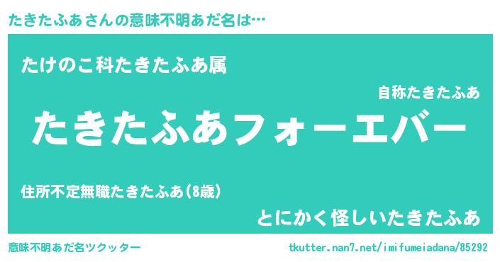 | 女子向けラノベタイトル風あだ名 | 『たきたふあの婚約者』 |