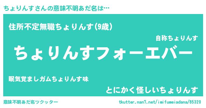 | ファンタジー風あだ名 | 『エターナルチョリンスー』『ゼチョトゥ』 |