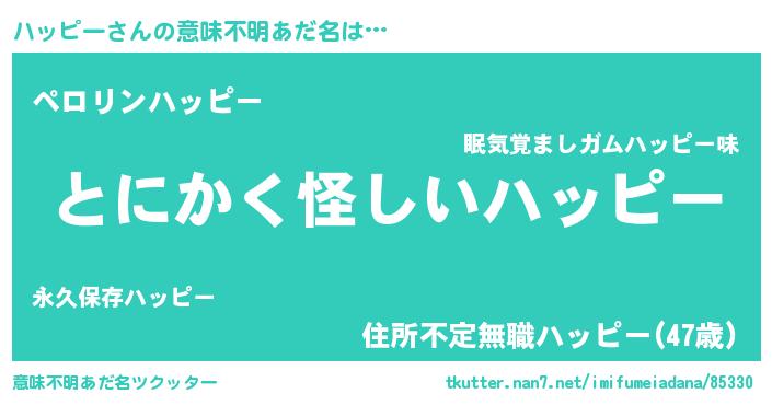 | 胡散臭い通販商品みたいなあだ名 | 『信頼と実績のペンダント…その名も「ハッピー」』 |