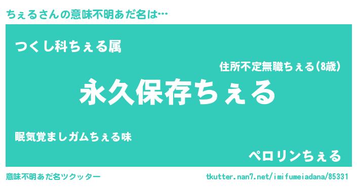 | ヘコむあだ名 | 『ちぇる(苦笑)』『ちぇふぇ~』 |