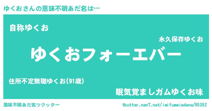 | 男性向けラノベタイトル風あだ名 | 『ゆくおに滅ぼされるだけの簡単なお仕事です』 |