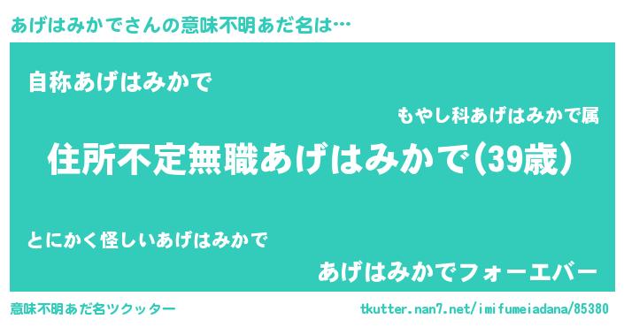| 伝説のあだ名 | 『最古の忍者あげはみかで』 |